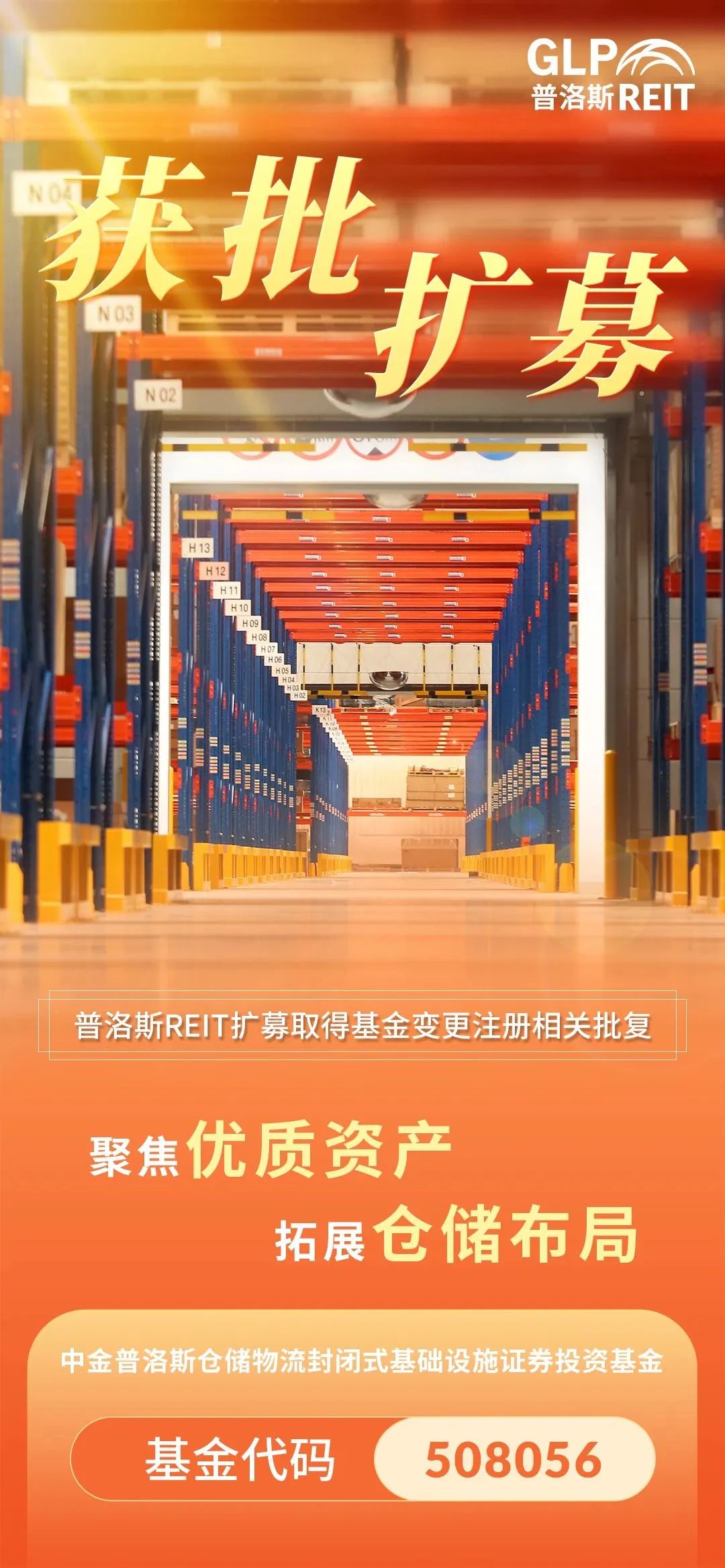 3月31日,普洛斯REIT(“中金普洛斯仓储物流封闭式基础设施证券投资基金”,基金代码:508056)第一次扩募并新购入基础设施项目正式获得准予基金变更注册的相关批复。